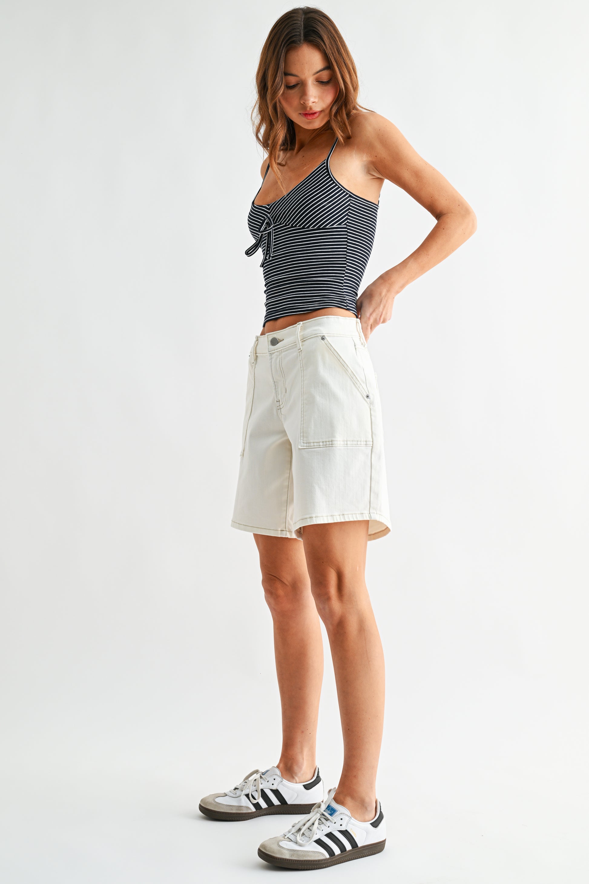 Meet the Emory Low Rise Baggy Short—your go-to for laid-back, vintage-inspired jort with a modern edge. Designed with a low-rise waist and a relaxed, baggy fit, this silhouette sits easy on the hips and falls to a longer length for that effortlessly cool, borrowed-from-the-boys feel. Clean lines and utility-inspired detailing give it a casual, street-style vibe that’s perfect for everyday wear.